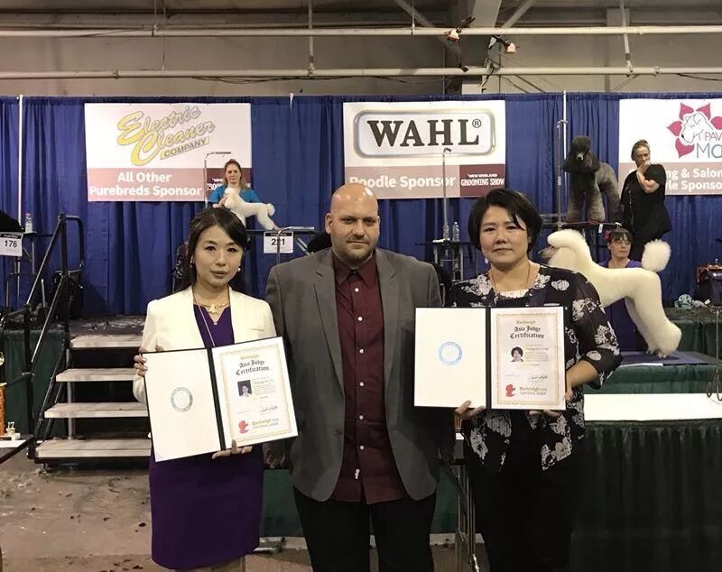 北京时间2017年10月15日,NGKC宠物美容师审查员张雅如女士和郑锫婷女士,受世界宠物美容组织Barkleigh 的邀请,在New England Grooming Show中担任实习审查员,完成了自己的首次国际实习审查任务。她们在实习审查中的表现,得到了Barkleigh高层的认可和赞赏。